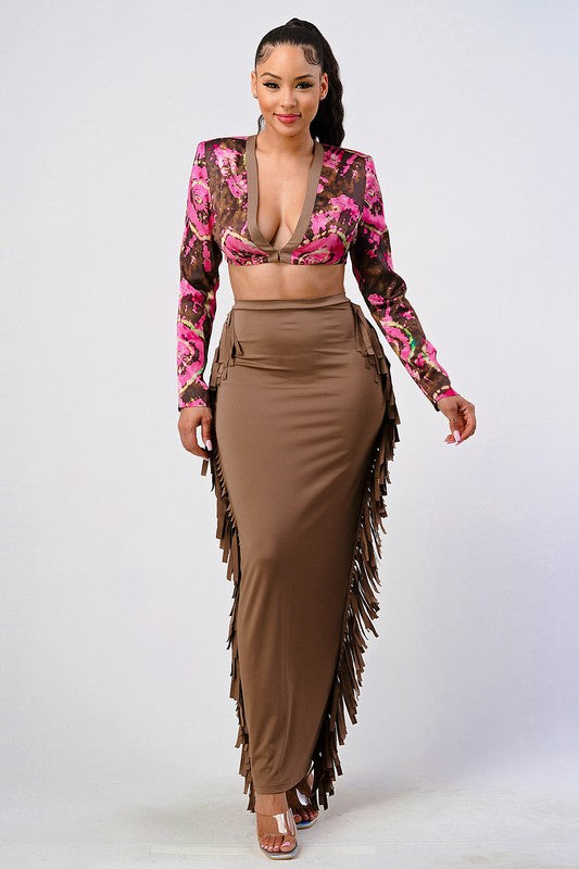 Tied Long Sleeve Top and Skirt Cover Up Set
