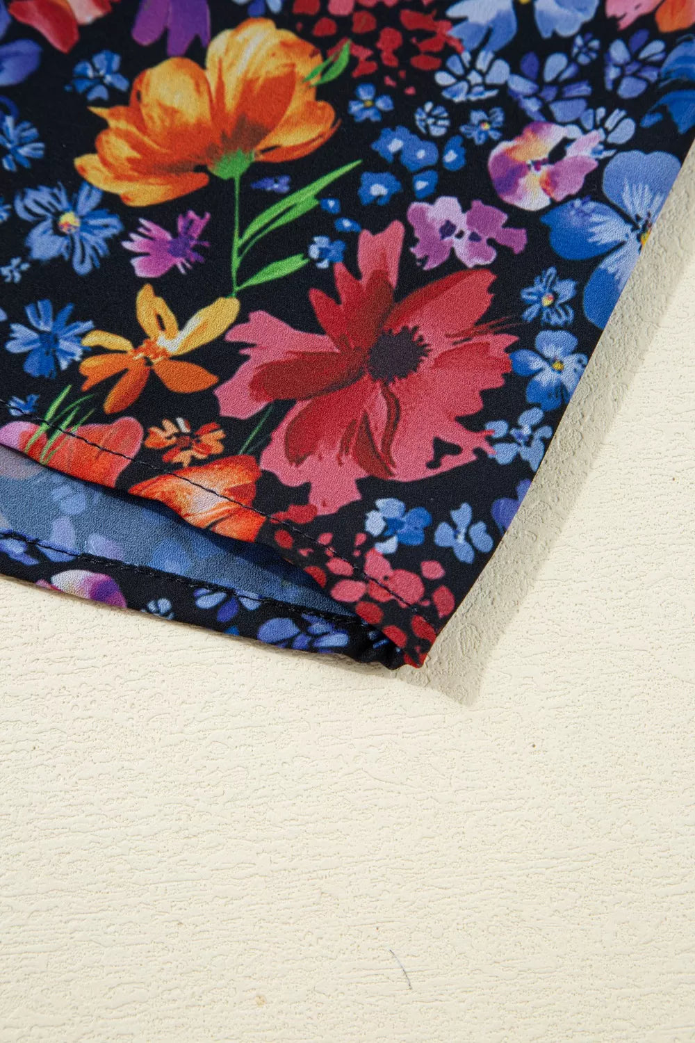 Black Venus TrendsFloral Notched Flounce Sleeve Maxi Dress