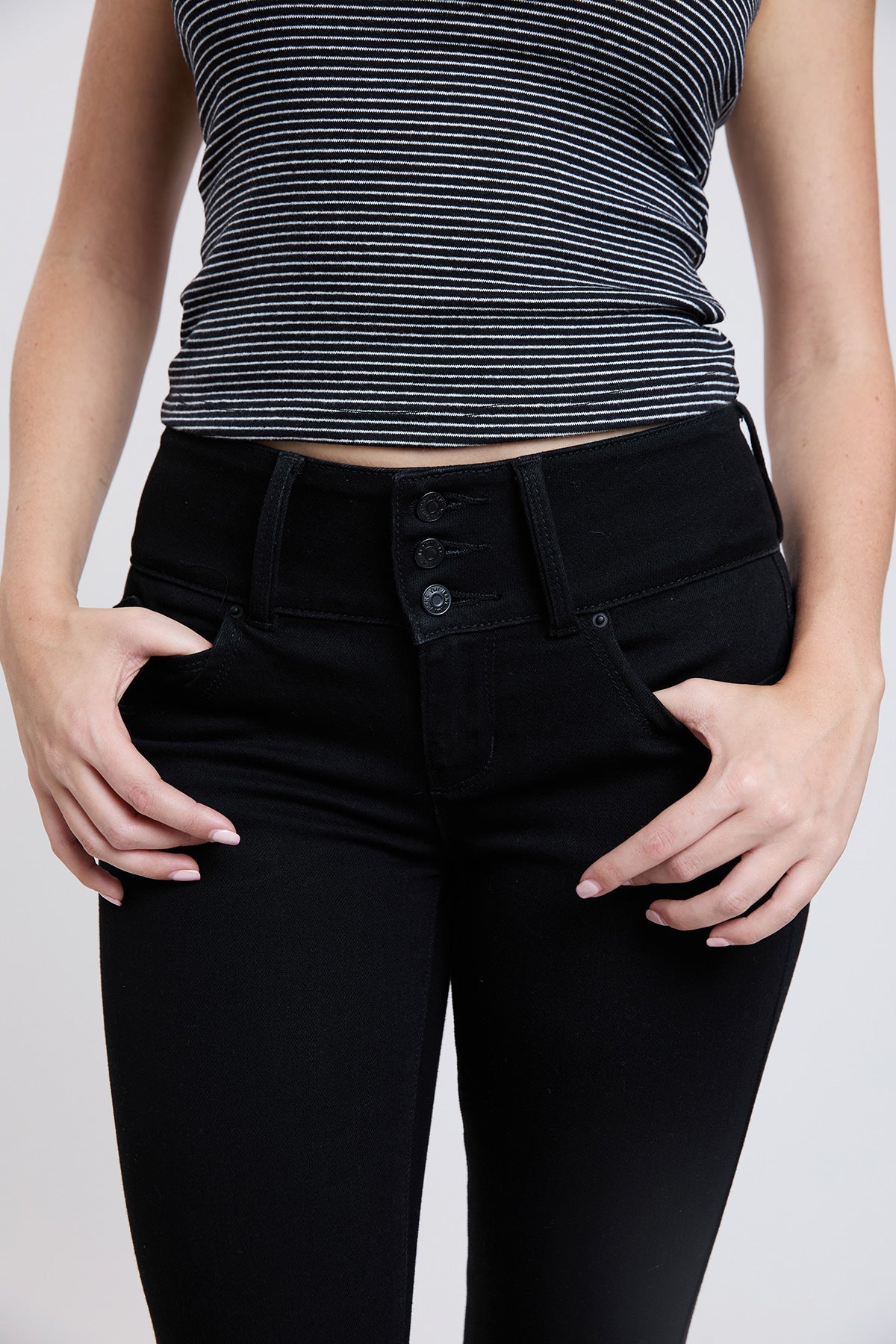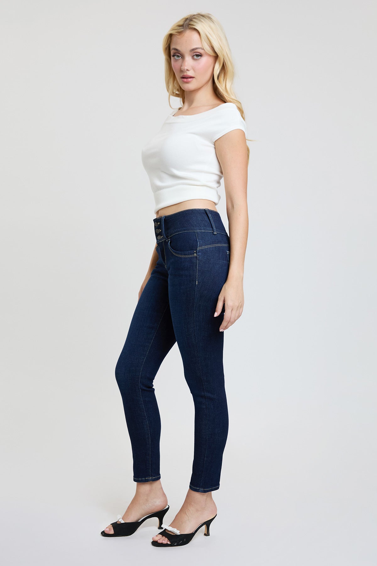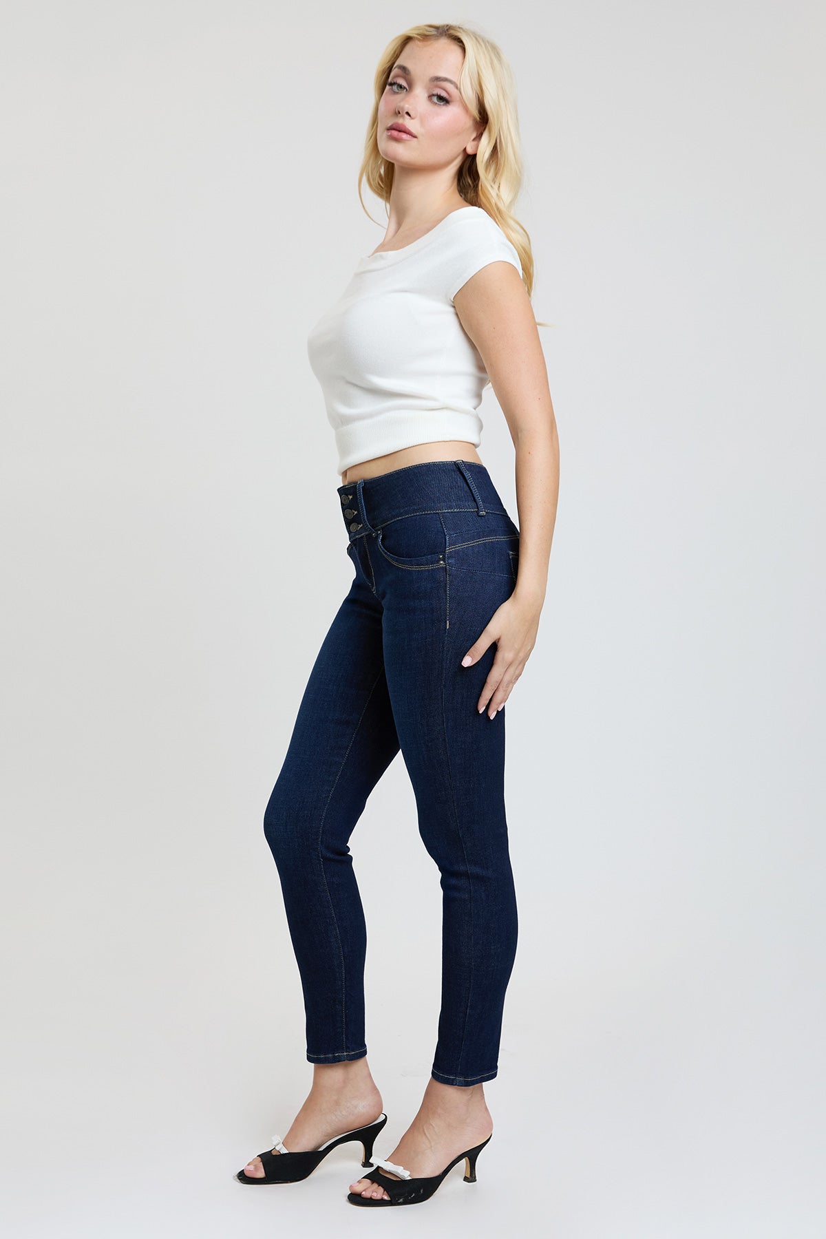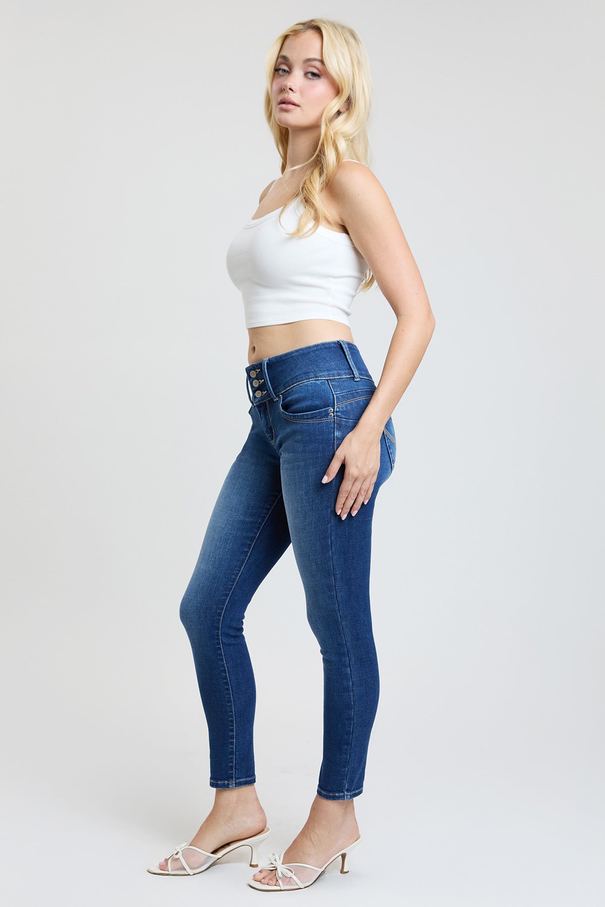 YMI JEANSWomen's Luxe Mid Rise 3-Button WannaBettaButt Skinny Jeans
