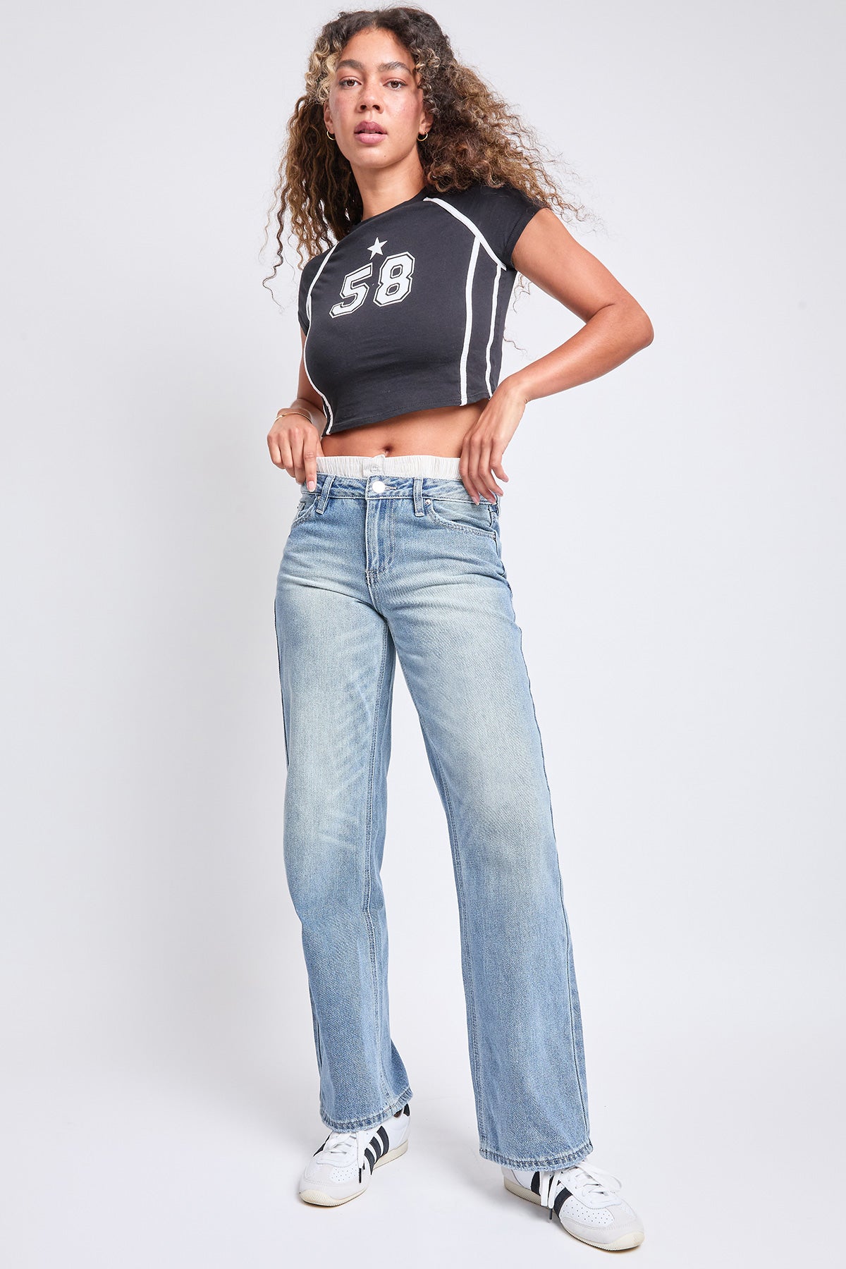 YMI JEANSWomen's Mid Rise Relax Fit Wide Leg Boxer Jeans