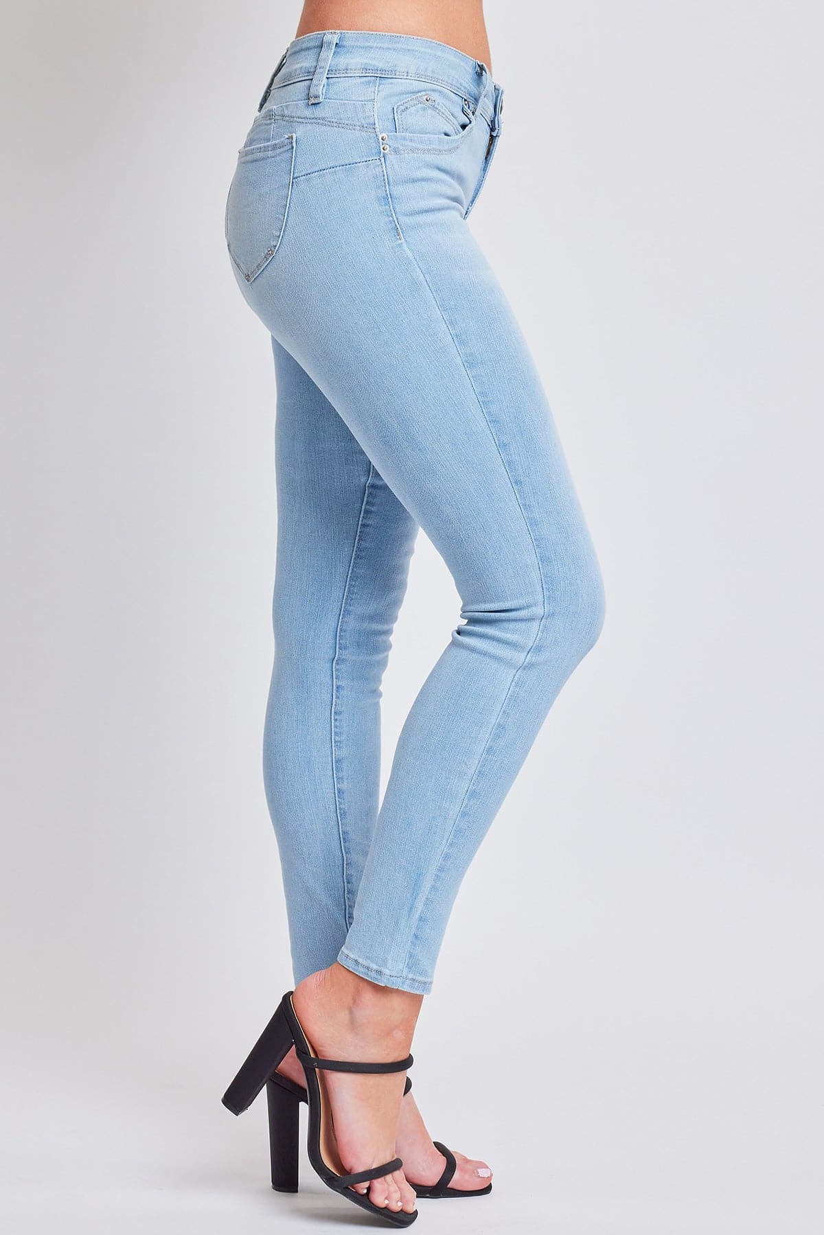 Perfectly made for the girl who lives in her skinnies! Our Women’s WannaBettaButt Mid-Rise Skinny Jean Made With Recycled Fibers is a big YMI fan-favorite. Made with lightweight and stretchy, yet durable recycled micro fibers, these slim-fit jeans provide you with the right amount of comfort and a slimming silhouette. Detailed with our signature heart-shaped butt stitching to highlight your natural curves and subtle whiskering to add a lived-in look - these denim pants are comfortable for all day wear and can easily be taken from day to night! Style with a cute graphic tee and tennis for a casual vibe or a cropped tank and heels for something sexier.